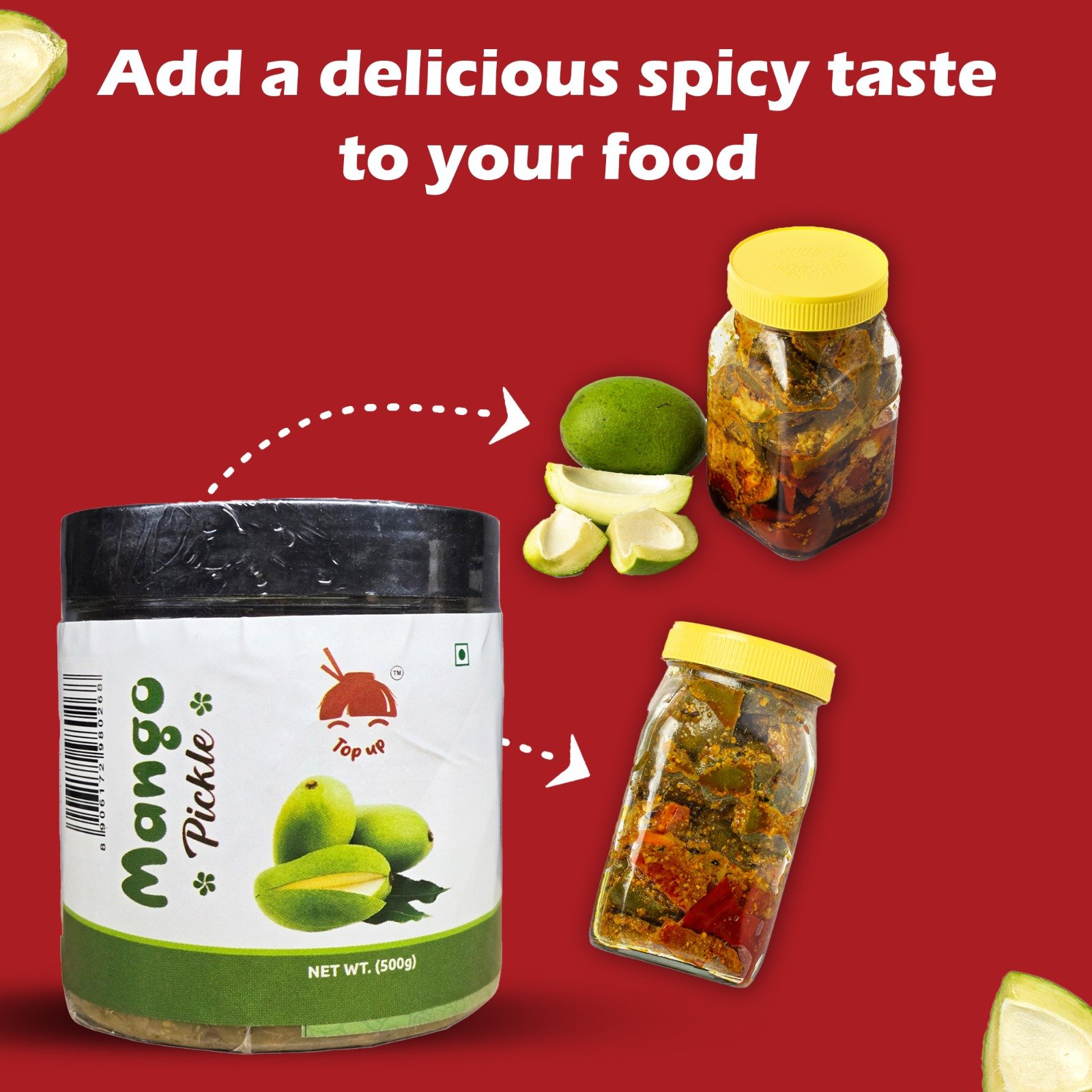 Top Up Mango Pickle is made from hand-picked, juicy mangoes and a special blend of Indian spices, delivering an authentic taste of tradition with every spoonful. Marinated to perfection, this pickle adds a tasty kick to rice, parathas, snacks, and more. Packed in a hygienic jar, it’s free of artificial preservatives and flavors for pure homemade goodness.